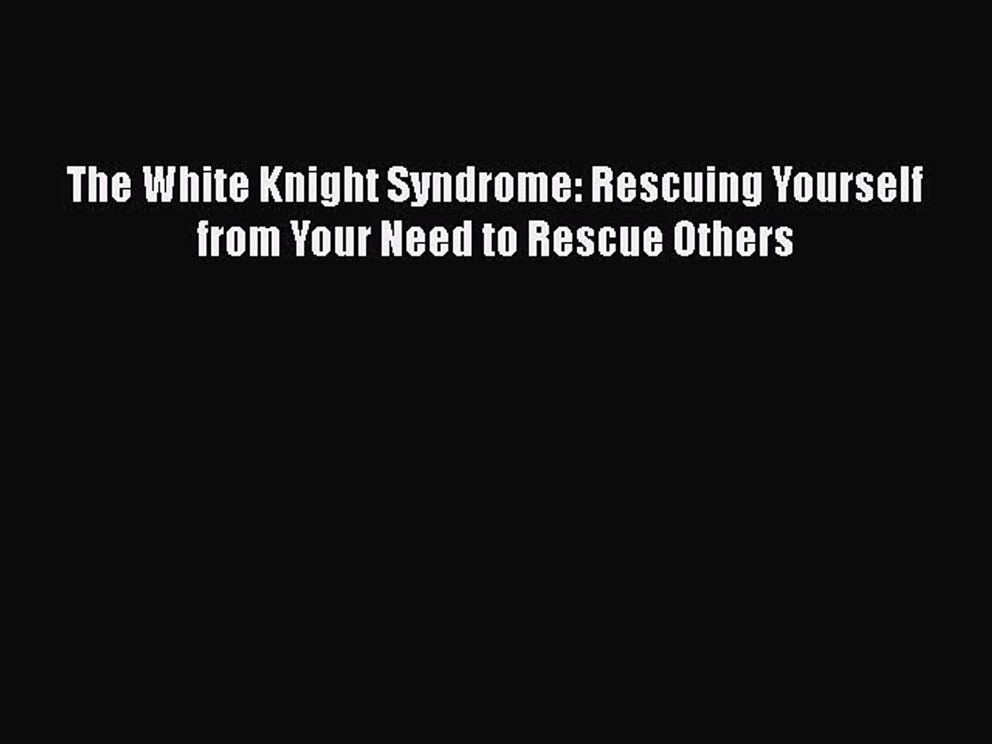 People afflicted by white knight syndrome need to save themselves. Share Embed White Knight Syndrome Please copy and paste this embed script to where you want to embed. I just want one person I can rescue and I want one person who needs me.