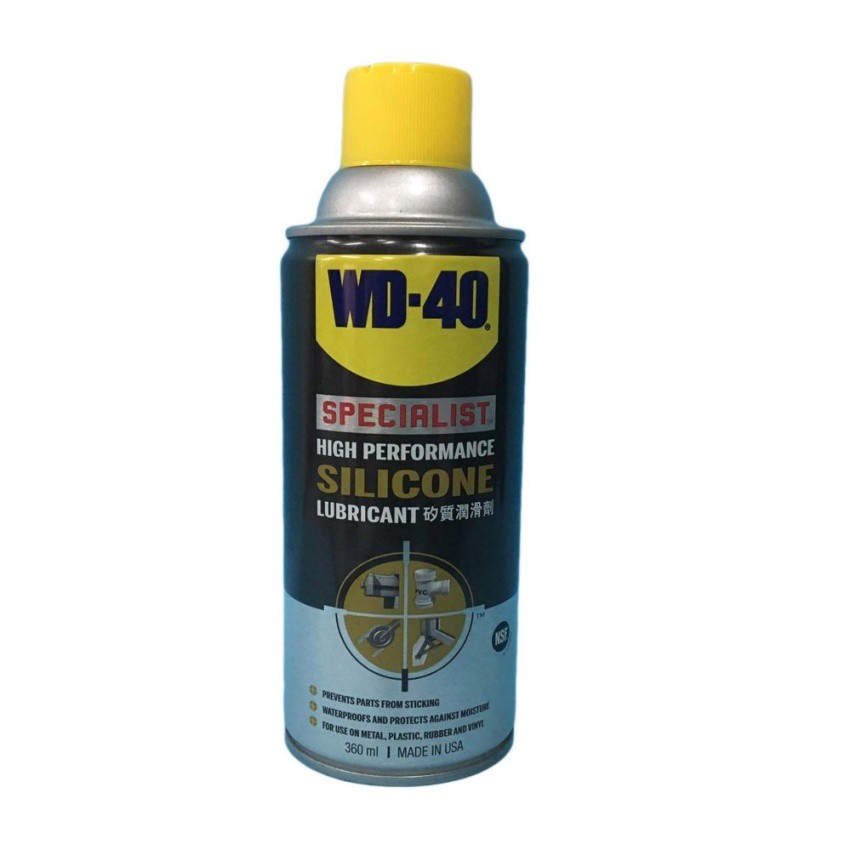 WD-40 Specialist Silicone Lubricant safely lubricates waterproofs and protects metal and non-metal surfaces such as rubber plastic and vinyl.