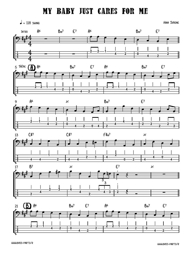 Guitar chords and guitar tablature made easy. My baby just cares for me. See also baby and one for my baby piano sheet music Piano Vocal and Guitar.