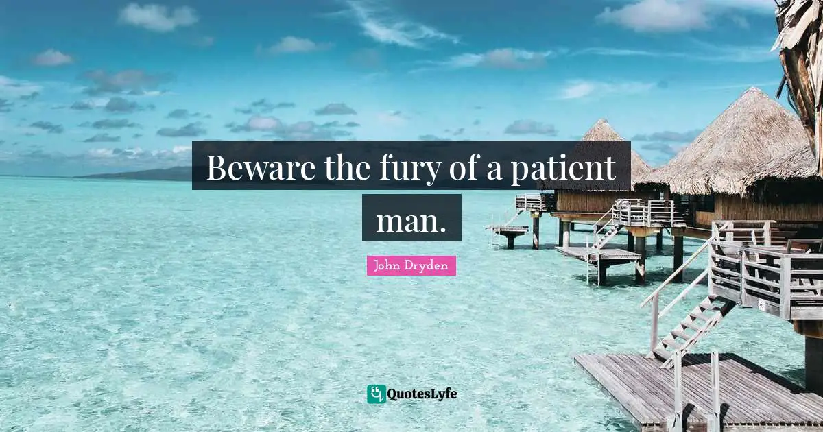 I guess that at 74 years of age I dont have the patience to learn. The wise for cure on exercise depend. Better to hunt in fields for health unsought Than fee the doctor for a nauseous draught. Finding the words to motivate yourself or someone else doesnt always come easily. Motivation Quote Beware The Fury Of A Patient Man Quoteslists Com Number One Source For Inspirational Quotes Illustrated Famous Quotes And Most Trending Sayings. Memorable quotes and exchanges from movies TV series and more. Download or share this John Dryden quote with your friends on facebook linkedin whatsapp twitter and on other social media.